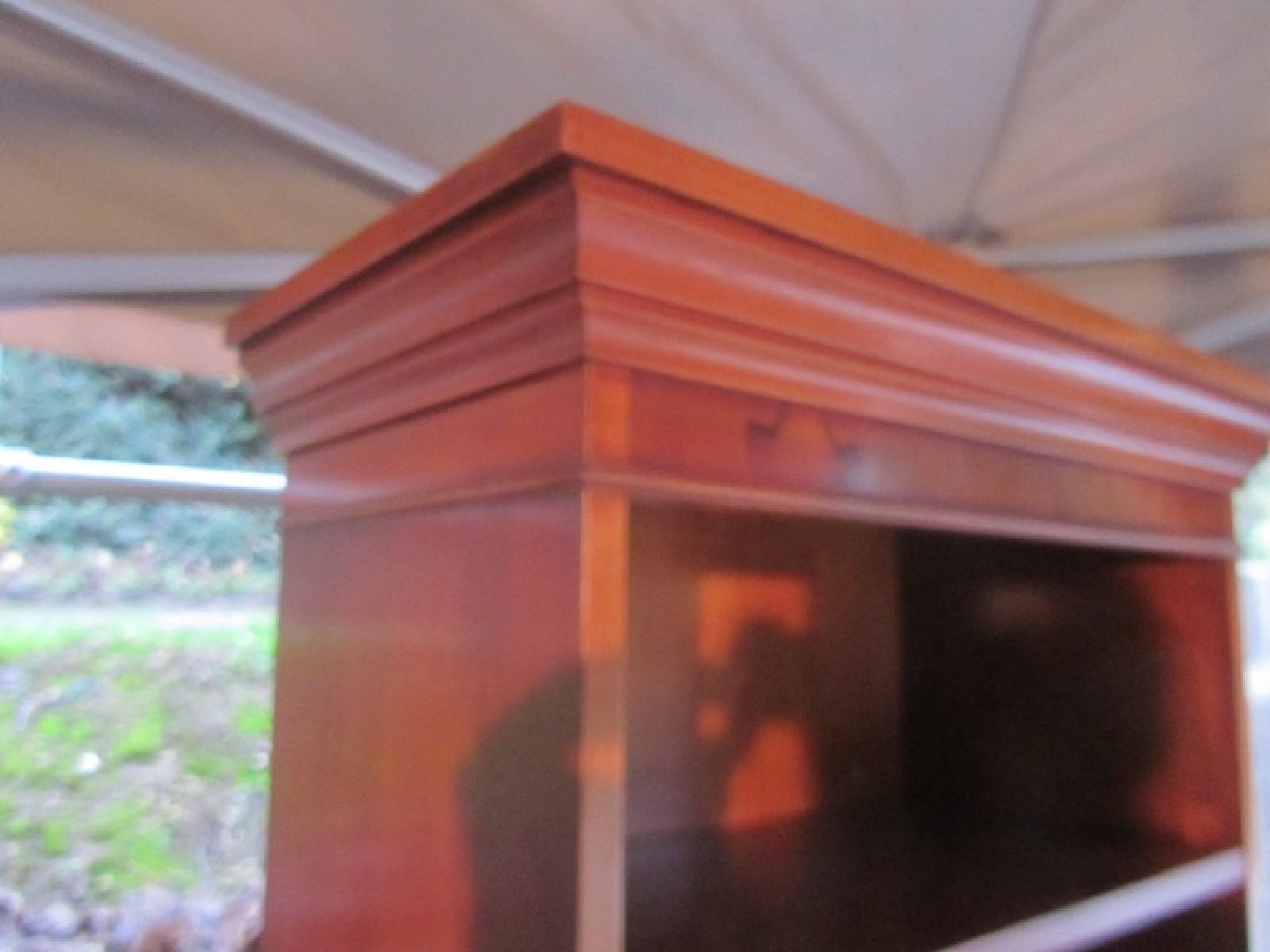 THIS IS A LARGE YEW VENEERED BOOKCASE. THIS HAS ADJUSTABLE SHELVING, IDEAL FOR STORING BOOKS, DISPLAYING ITEMS etc. AN ATTRACTIVE BOOKCASE IN GOOD CONDITION, SOME LIGHT WEAR AND TEAR. A GOOD QUALITY ITEM.