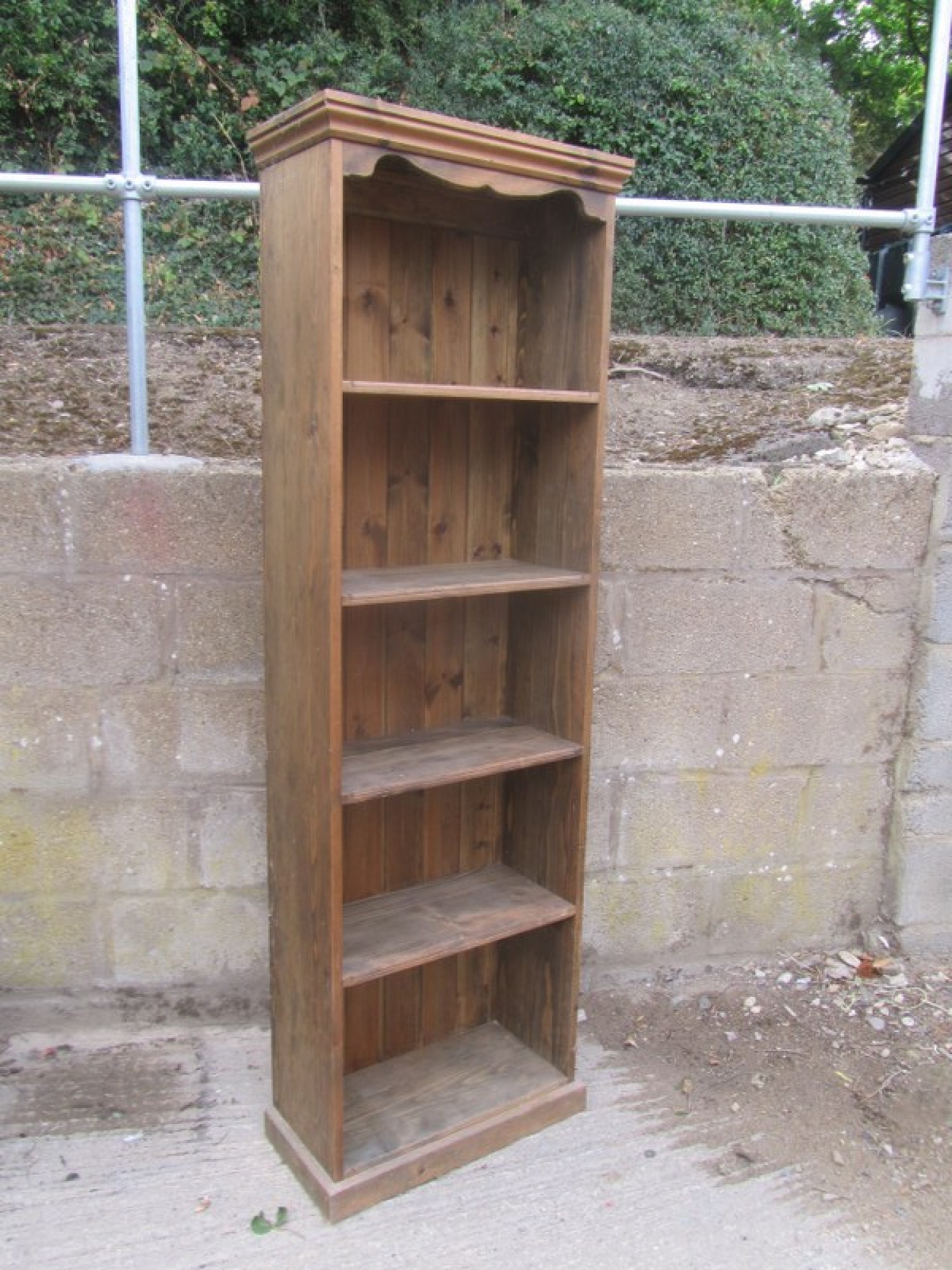 A TALL BOOKCASE MADE FROM SOLID PINE IN AN ANTIQUE PINE COLOUR FINISH.