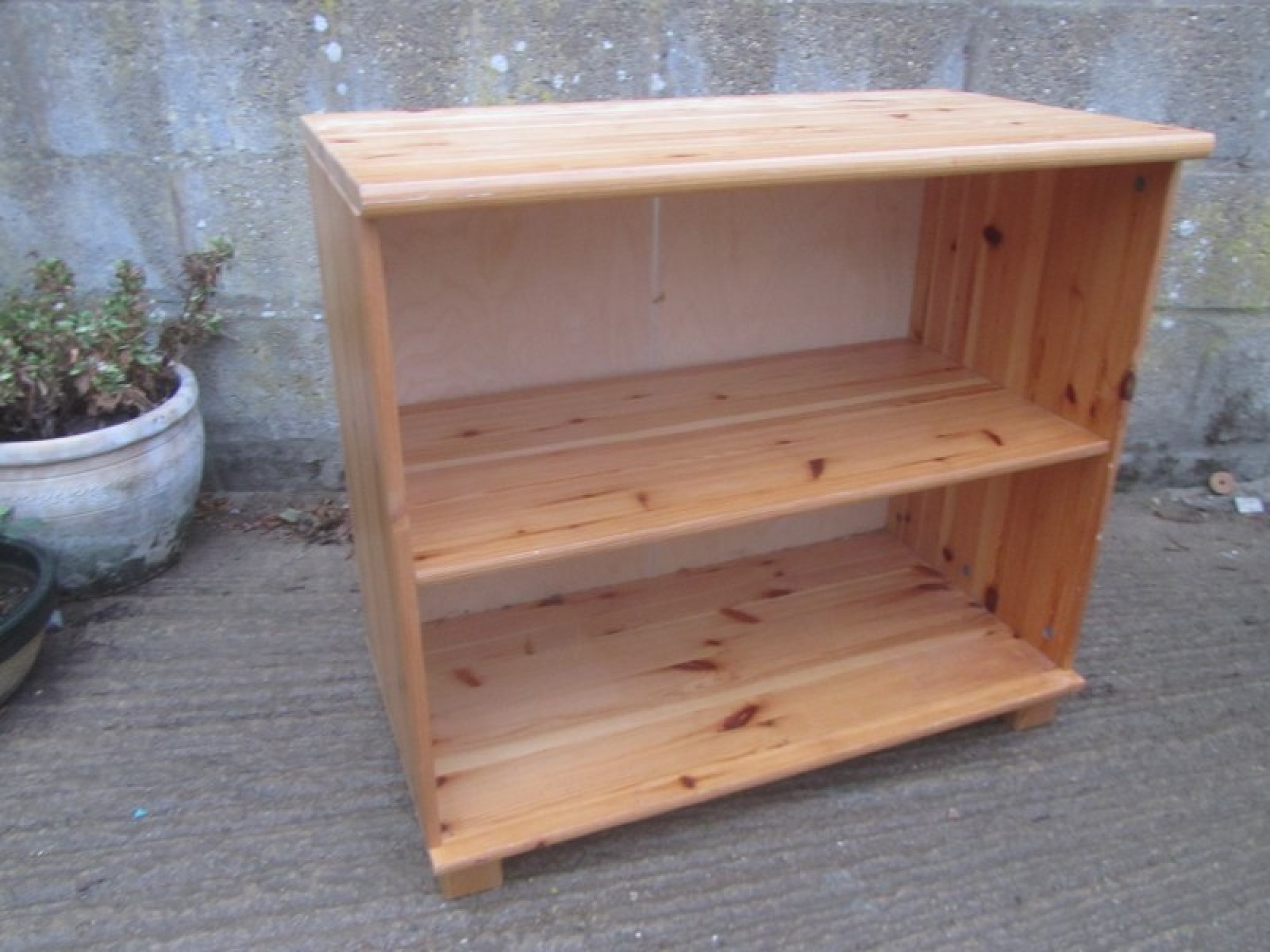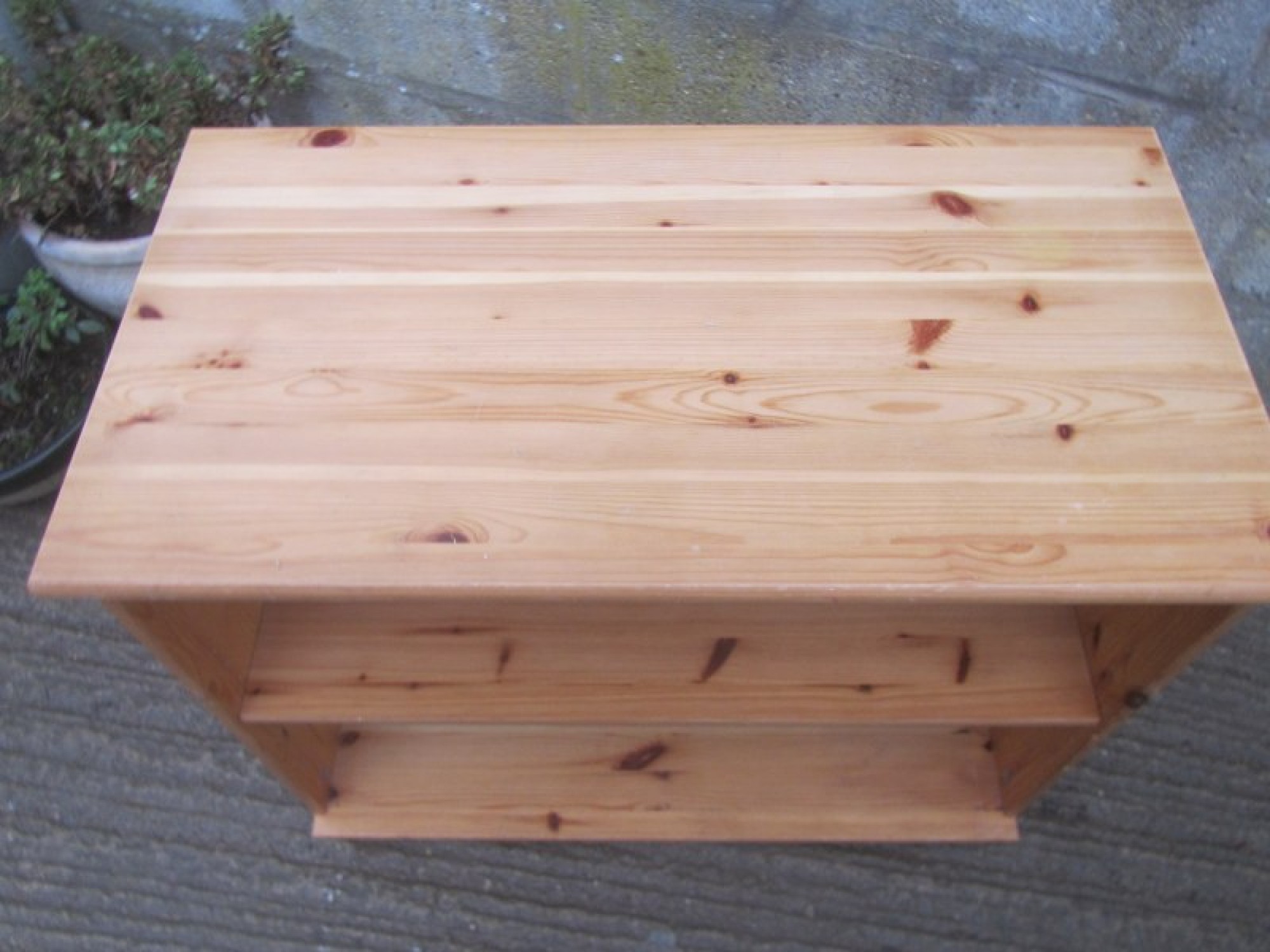A BOOKCASE MADE FROM SOLID PINE. DEEP SHELVES.