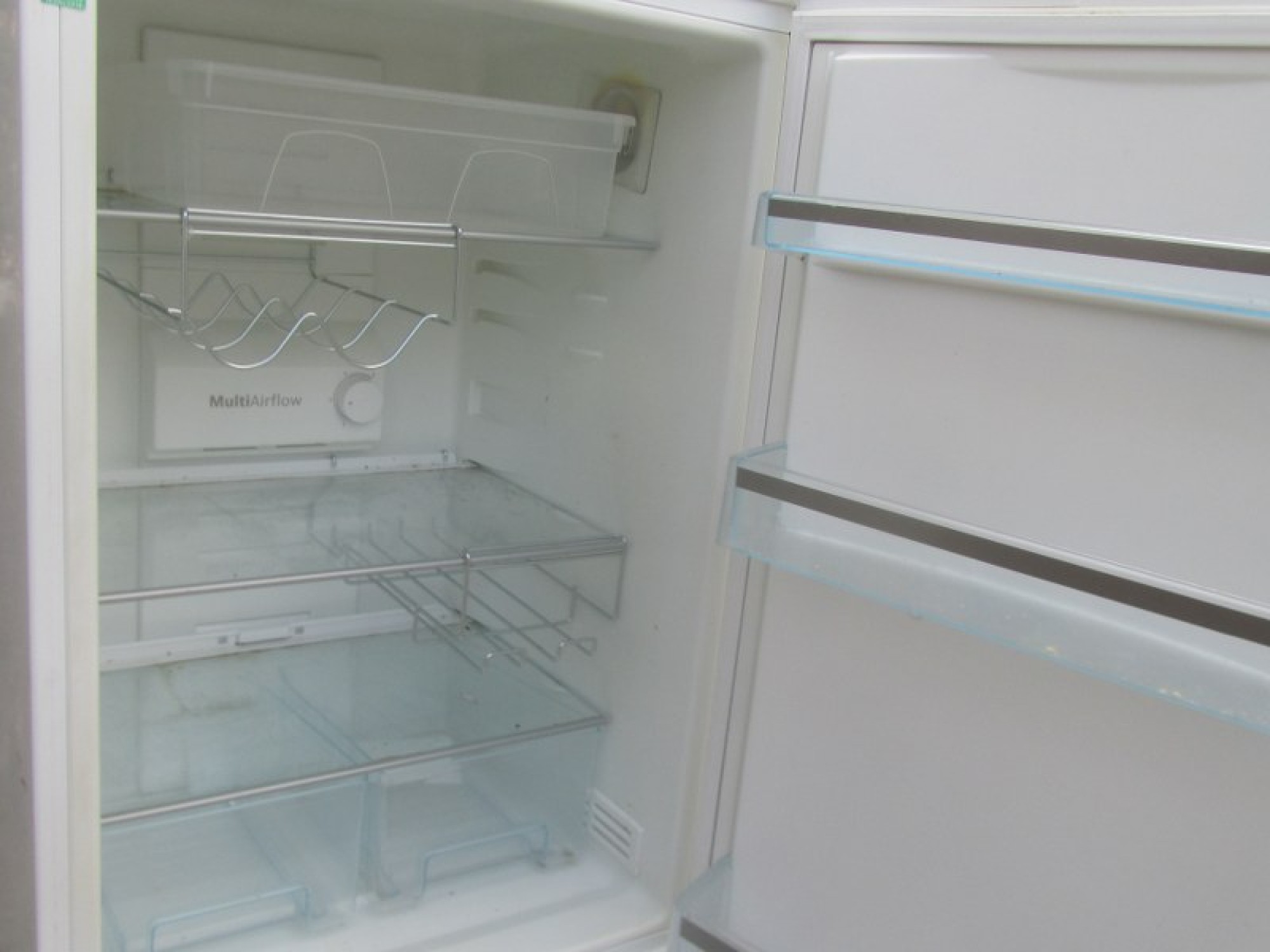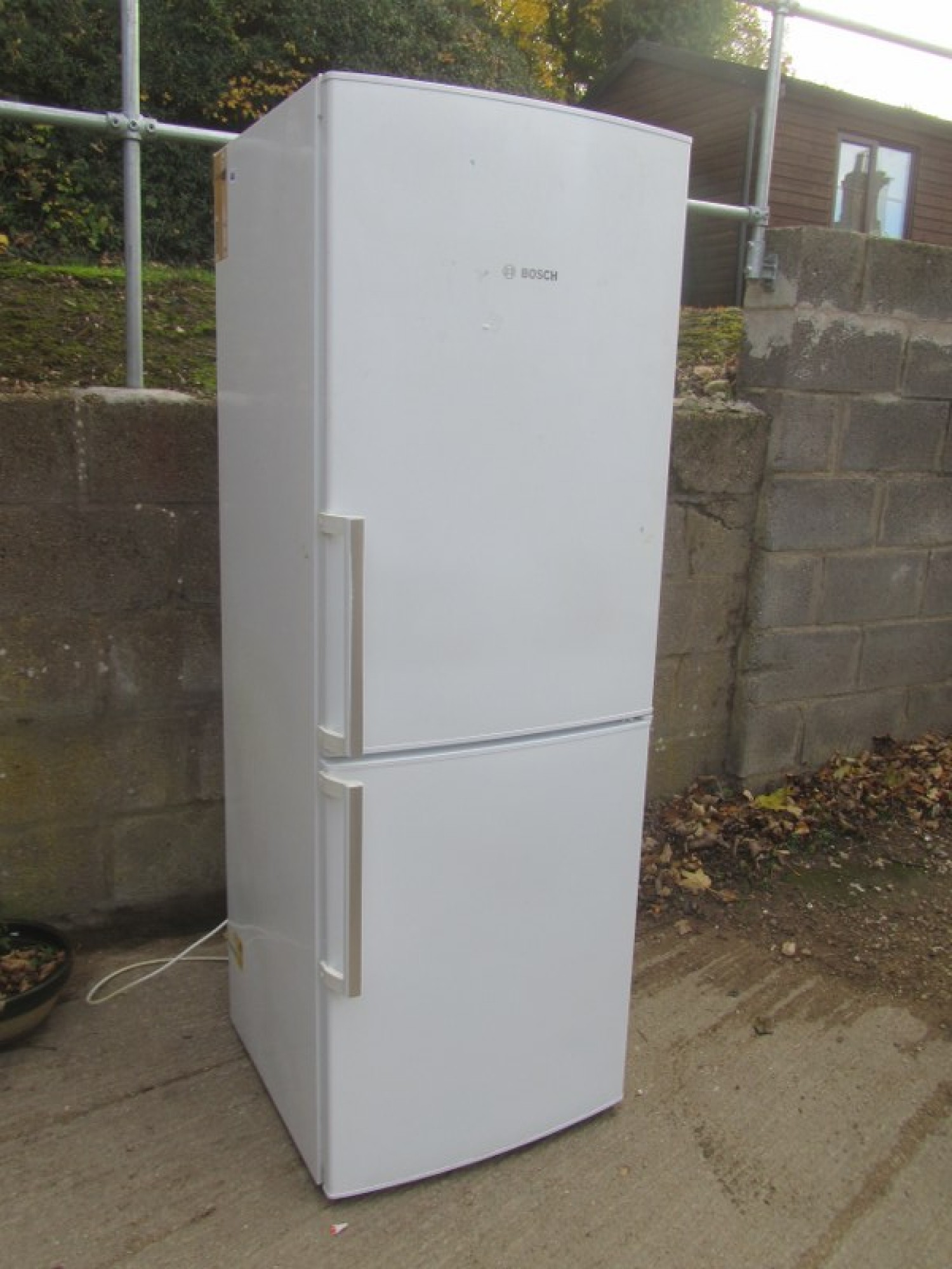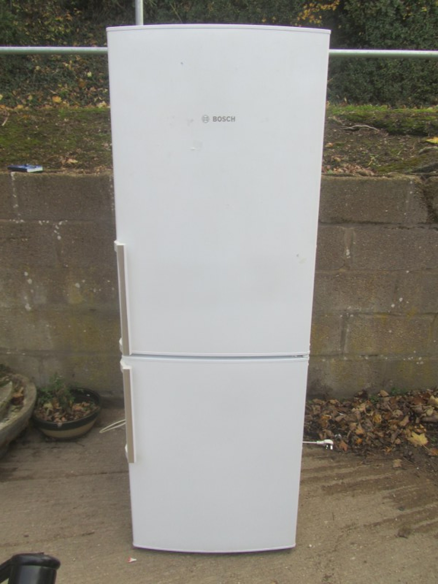 A TALL FRIDGE FREEZER, MADE BY BOSCH. FREEZER AT THE BOTTOM, LARGE FRIDGE AT THE TOP. IT IS IN WORKING ORDER, IN AVERAGE CONDITION, IT NEEDS CLEANING INSIDE AND OUT, HENCE PRICE.