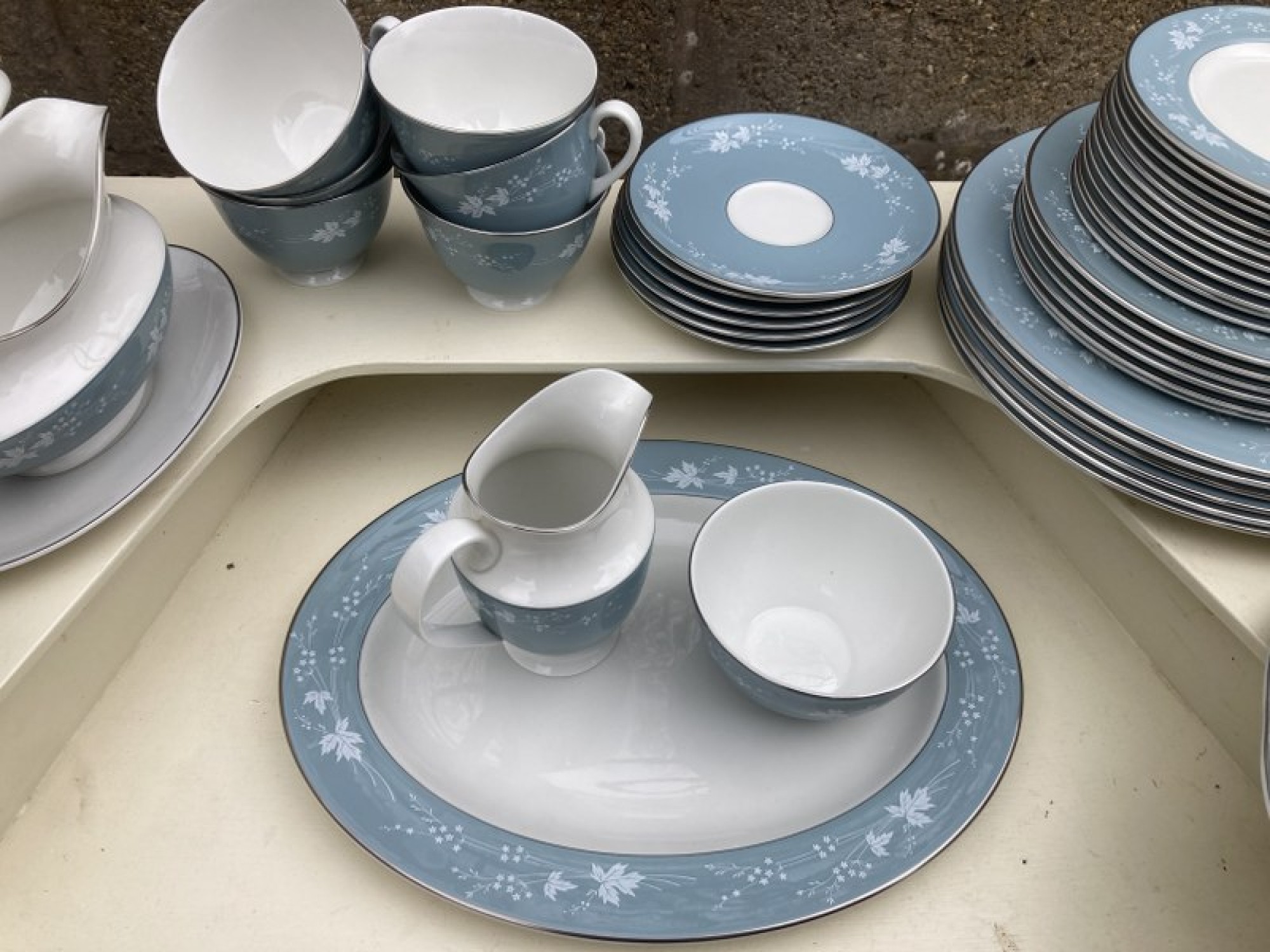 50 x PIECES. A TEA / DINNER SET, INCLUDING PLATES, SAUCERS, CUPS etc. IN GOOD CONDITION. MADE BY ROYAL DOULTON. FROM THE 'REFLECTION' RANGE.