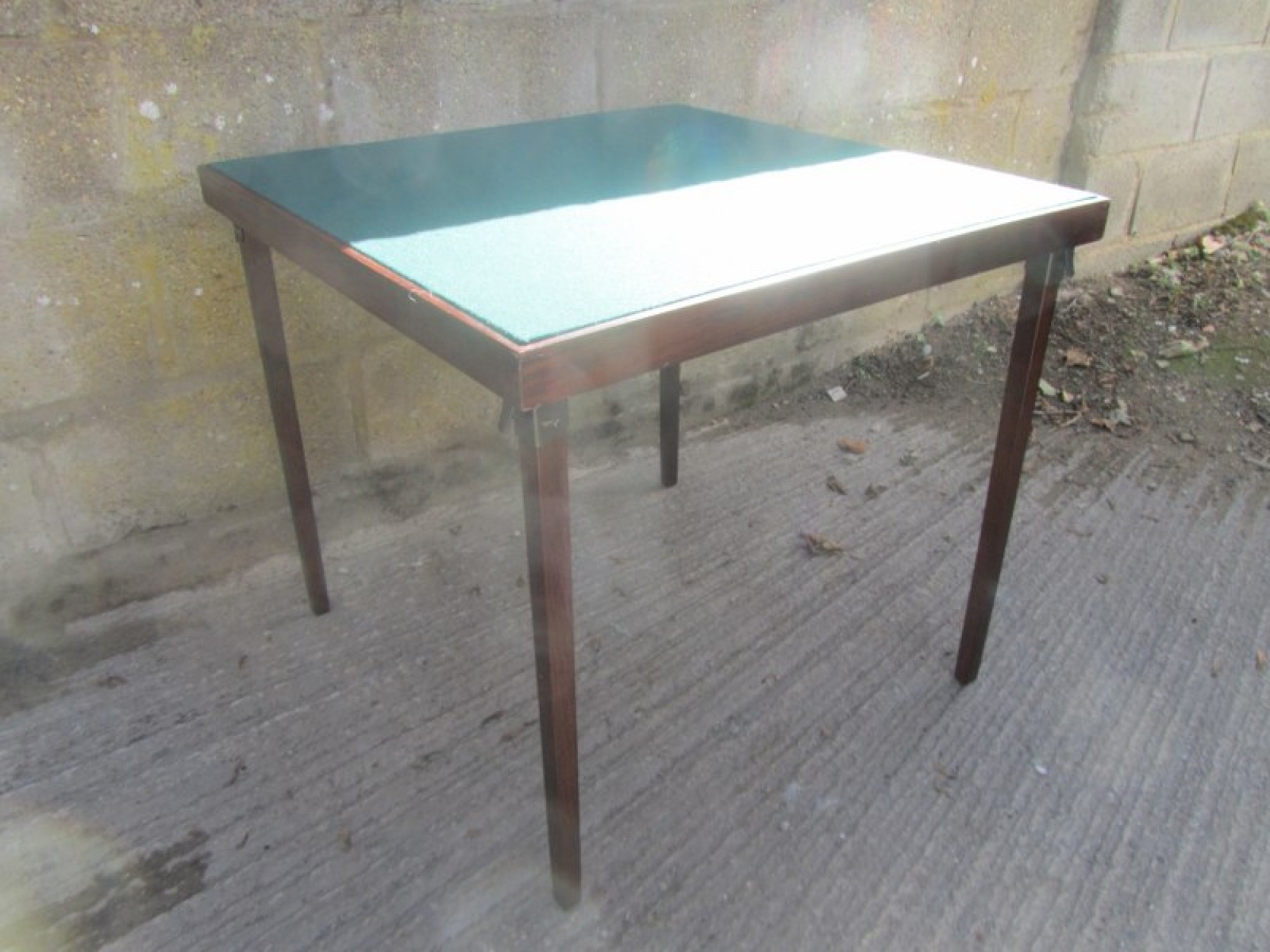 THIS IS A CARD TABLE, IT NEATLY FOLDS AWAY WHEN NOT IN USE. IT IS IN GOOD CONDITION.