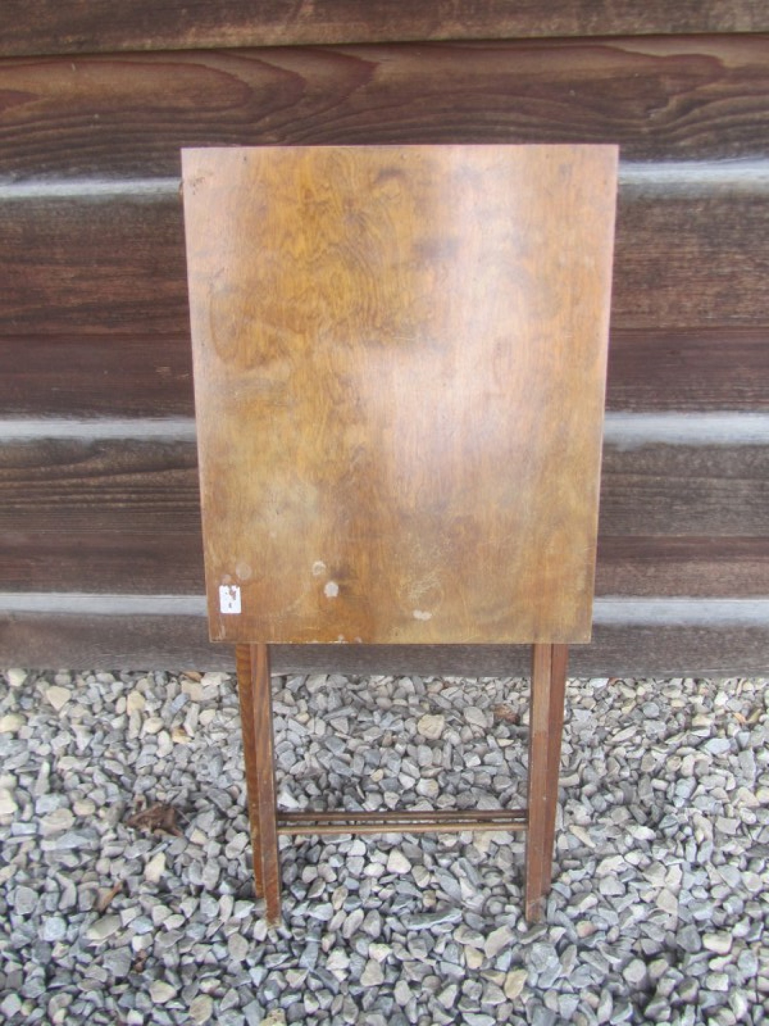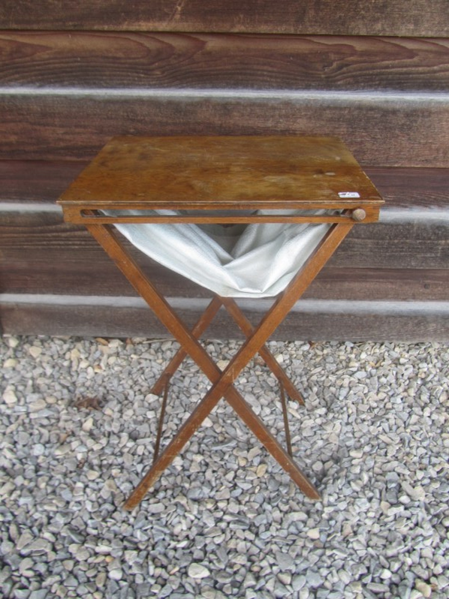 THIS IS A VINTAGE TABLE, IT NEATLY FOLDS AWAY WHEN NOT IN USE. STORAGE BAG FITTED BELOW. THE TABLE IS WOBBLY.