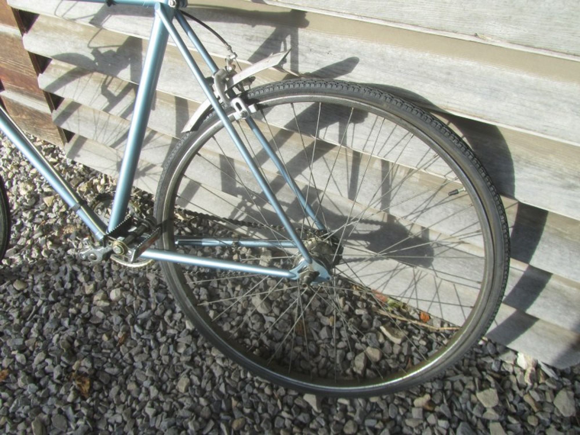 IT IS IN NEED OF A SERVICE, THE TYRES ARE FLAT, THE CHAIN IS DRY, THE BRAKES ARE STIFF. THE FRAME IS OK, BUT A LITTLE RUSTY IN PLACES, IT LOOKS TO HAVE BEEN REPAINTED. IT NEEDS CHECKING OVER AND SERVICING BEFORE USE. WITH SOME TLC THIS COULD BE A STYLISH VINTAGE BIKE.