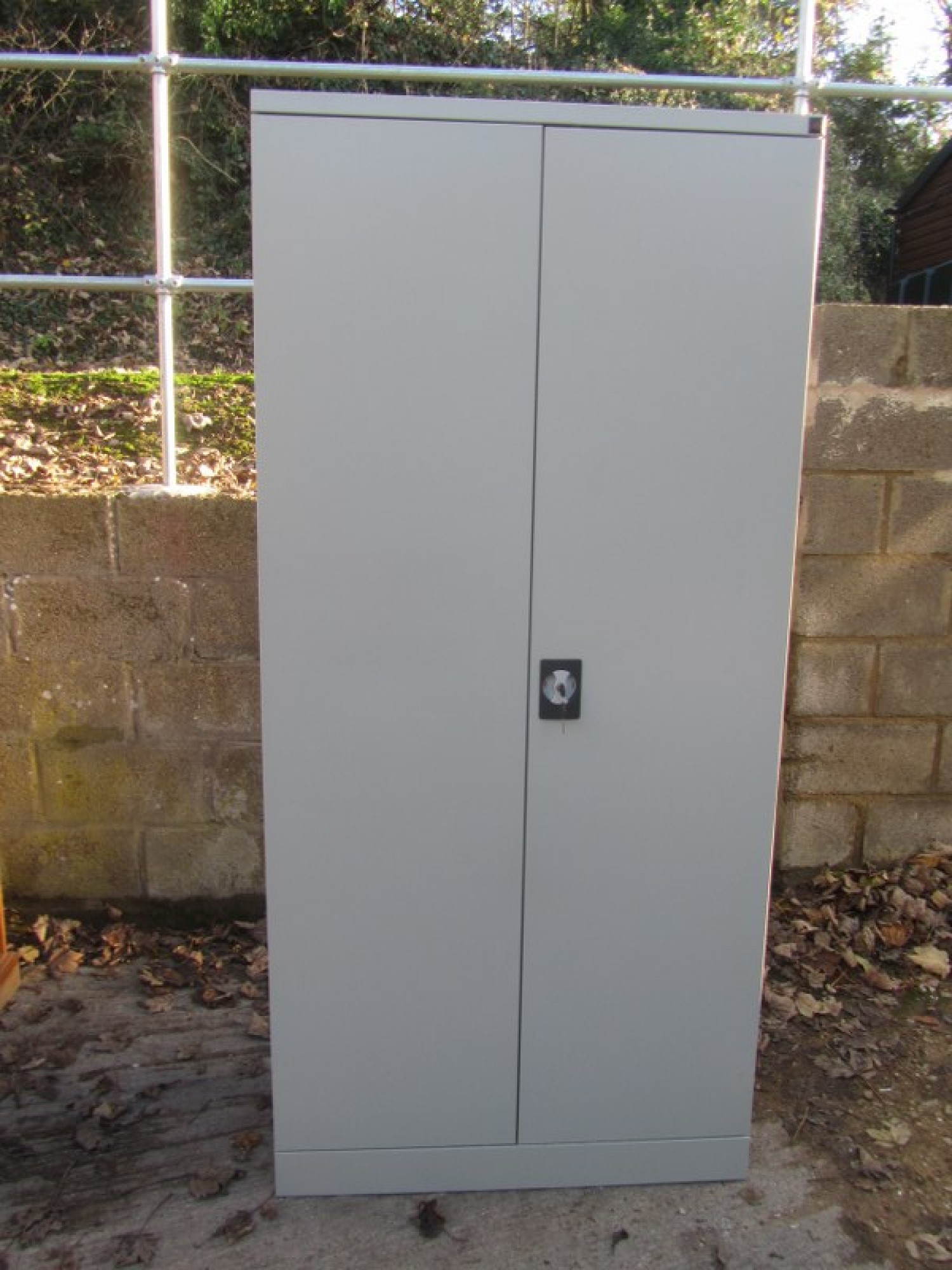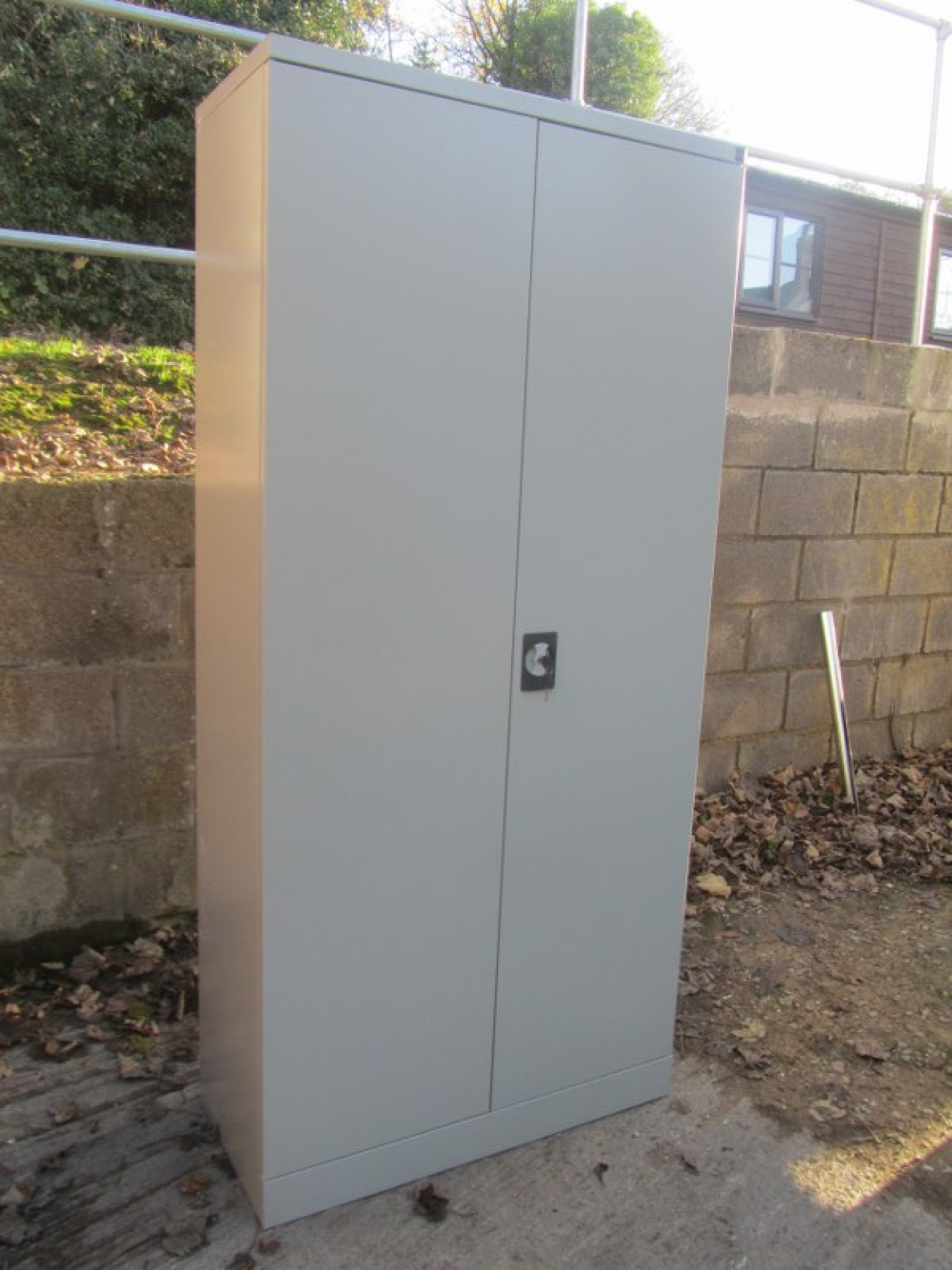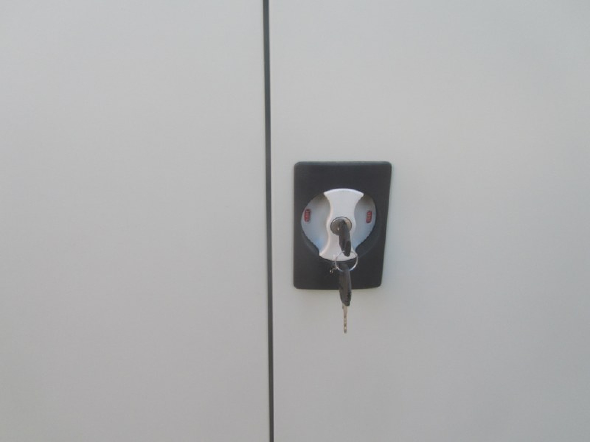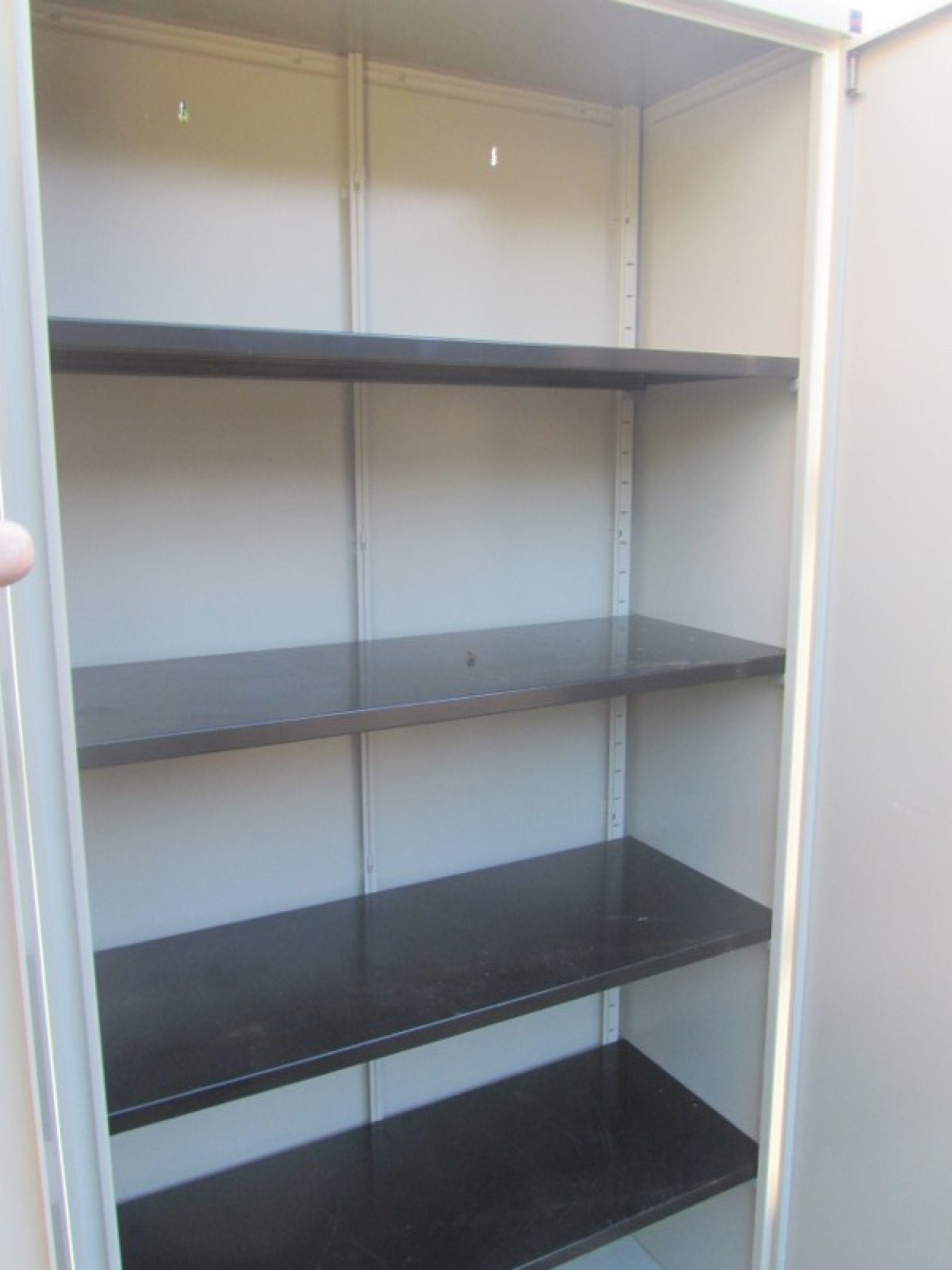 A METAL CABINET FOR THE HOME, OFFICE OR GARAGE. GOOD CONDITION, SHELVES INSIDE, WITH KEY.