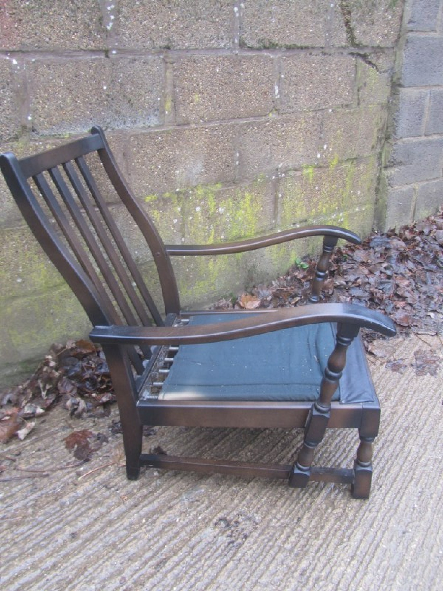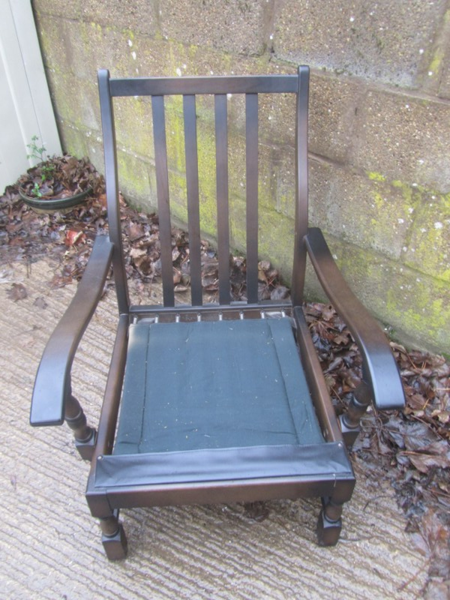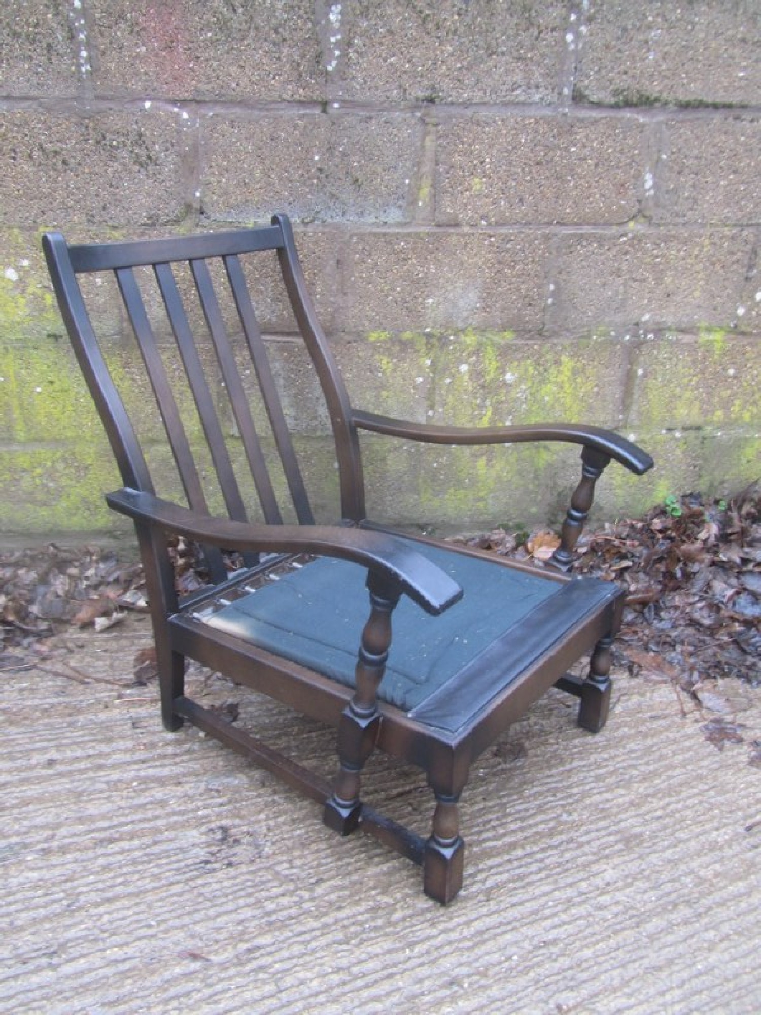 THIS IS AN ARMCHAIR FOR THE LIVING ROOM, BEDROOM OR ANYWHERE IN THE HOME. THE FRAME IS SOLID WOOD IN AN OAK COLOUR. IN GOOD CLEAN CONDITION, THE FRAME IS STURDY. FOR SALE IS A FRAME. THIS NEEDS NEW CUSHIONS. IDEAL PROJECT.