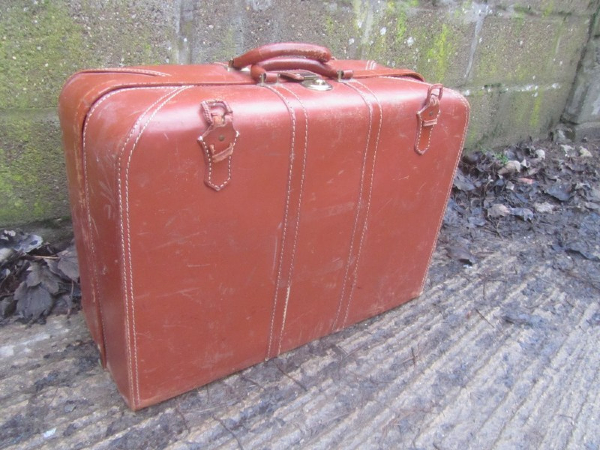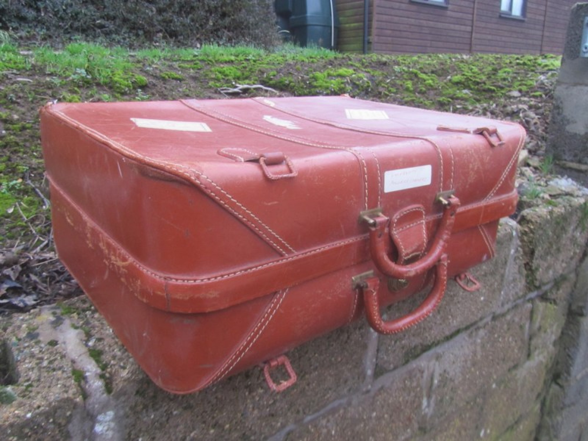 THIS IS A VINTAGE SUITCASE FROM THE 1950s/60s. IT IS REAL BROWN LEATHER. IT IS NATURALLY WORN, A GREAT SHABBY CHIC LOOK!