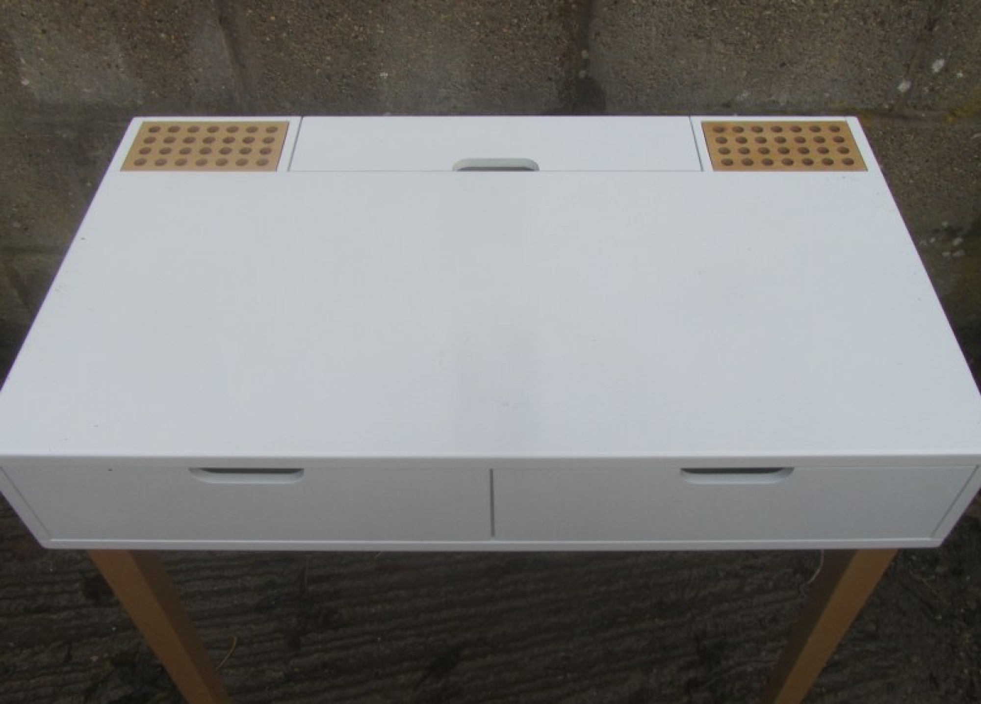 THIS IS A DRESSING TABLE OR DESK. IT IS WHITE IN GOOD CONDITION.